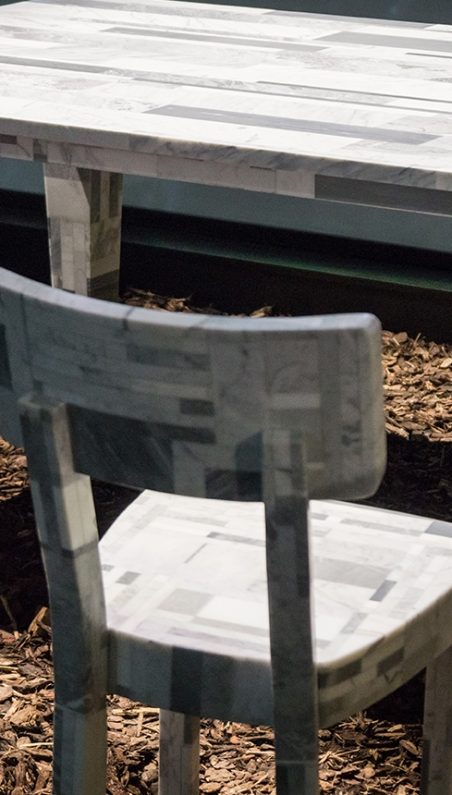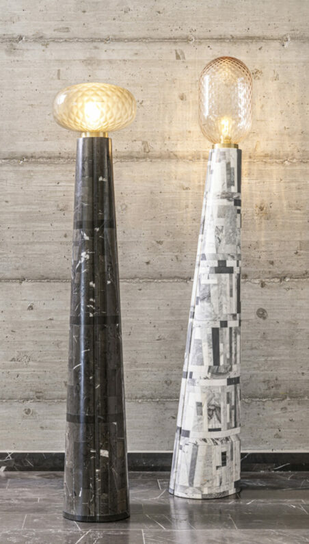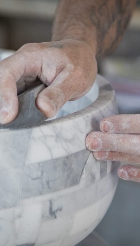 The artisans select and combine the materials to create elements that are always different but of the same quality and with the same aesthetic value. The randomness and mixage of different shades of recovered materials always creates new aesthetic combinations that give uniqueness to all projects. If the slab is the main commercial subject, sculpture, design and architecture are the main fields of study that have allowed us to find limits and new aesthetic-realization applications; for this reason the search for new limits and new aesthetic values is of central importance in Stonethica.
